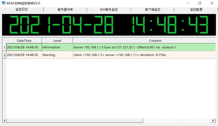 SNTP 授时软件:绿色软件,可添加多个授时服务器地址,具备故障自动切换功能。